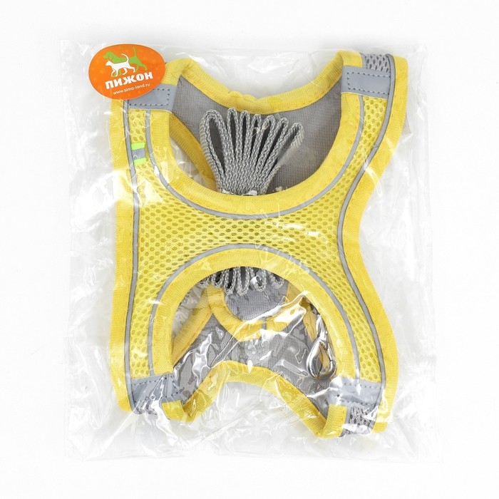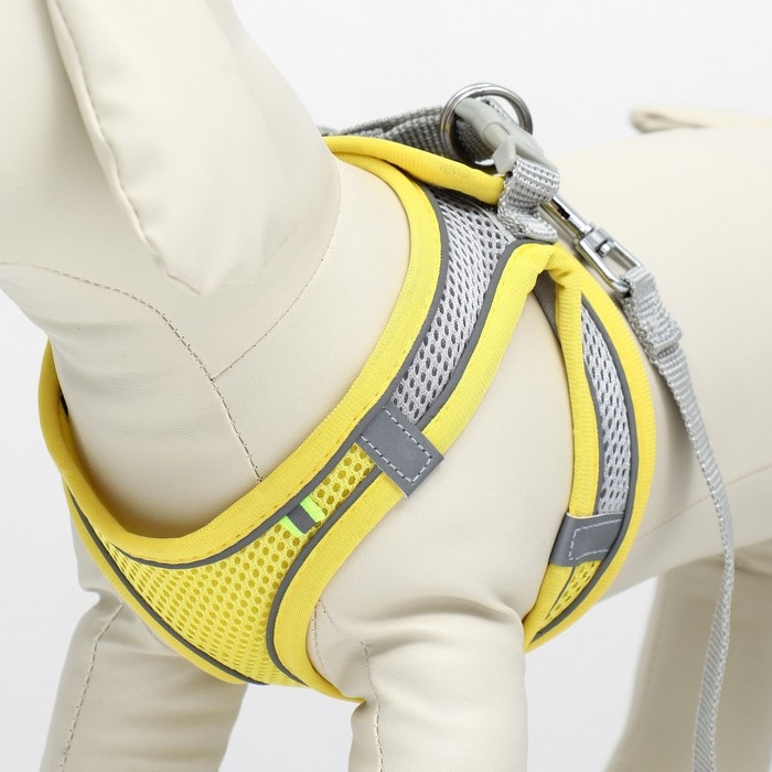 Комплект с мягкой шлейкой, быстросъемный, XS, поводок 150 х 1,5 см, ОШ 29-32 см, ОГ 31-34 см, жёлтый