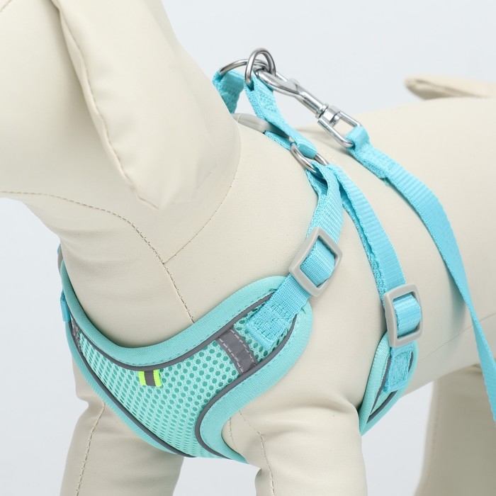 Комплект с мягкой шлейкой, быстросъемный, M, поводок 140 см, ОШ 44-48 см, ОГ 51-60 см, бирюзовый
