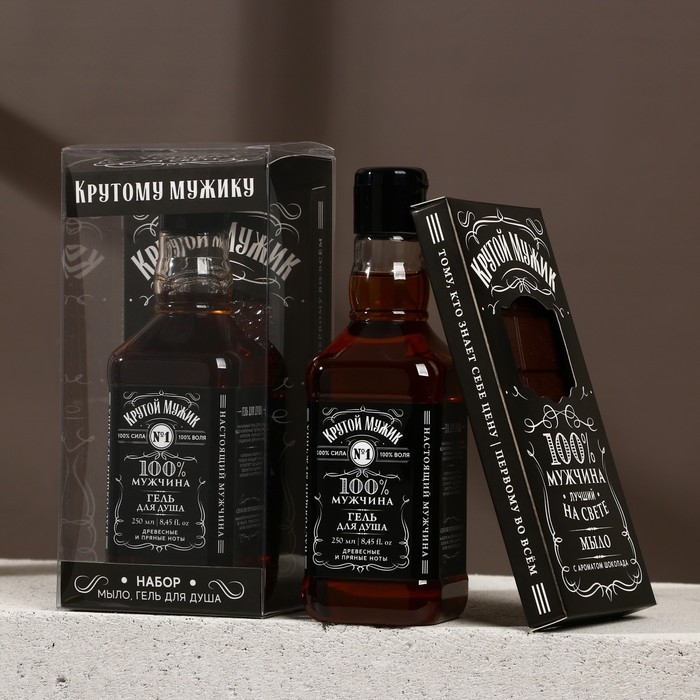 Новогодний подарочный набор косметики «Крутой мужик», гель для душа во флаконе виски 250 мл и мыло для рук 80 г, Новый Год