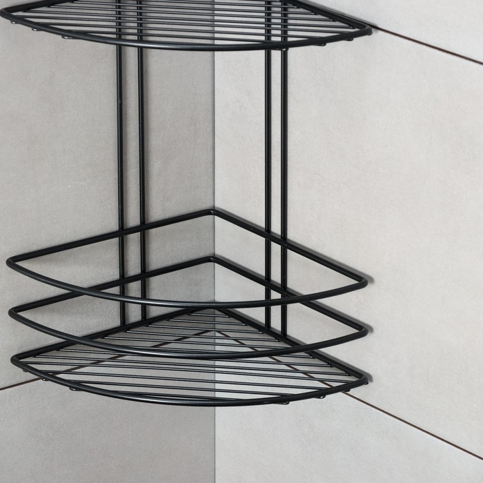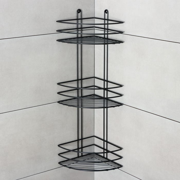 Полка для ванной угловая 3-х ярусная, 20×20×66 см, цвет чёрный
