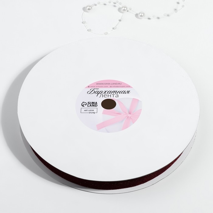 Лента бархатная, с золотым люрексом, 20 мм, 18 ± 1 м, цвет бордовый №46