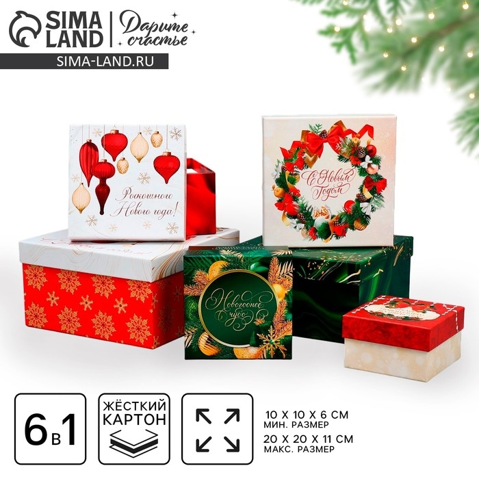 Набор подарочных коробк 6 в 1 «Новогодний подарок», 10 х 10 х 6 – 20 х 20 х 11 см, Новый год