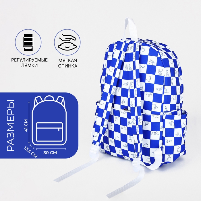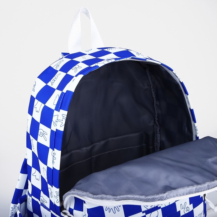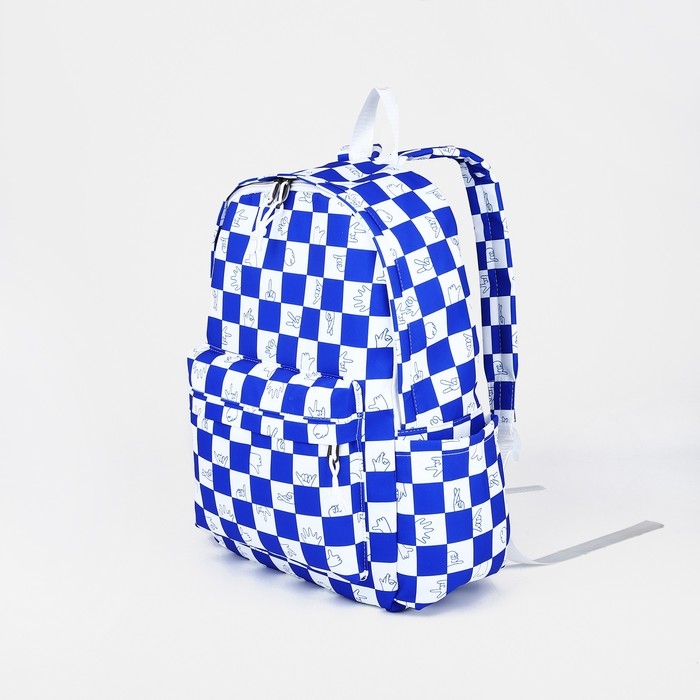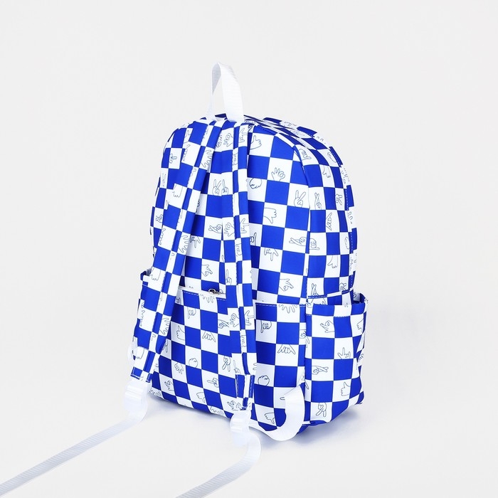 Рюкзак молодёжный из текстиля, 4 кармана, цвет белый/синий