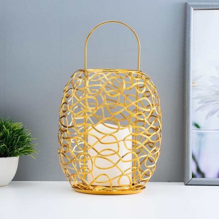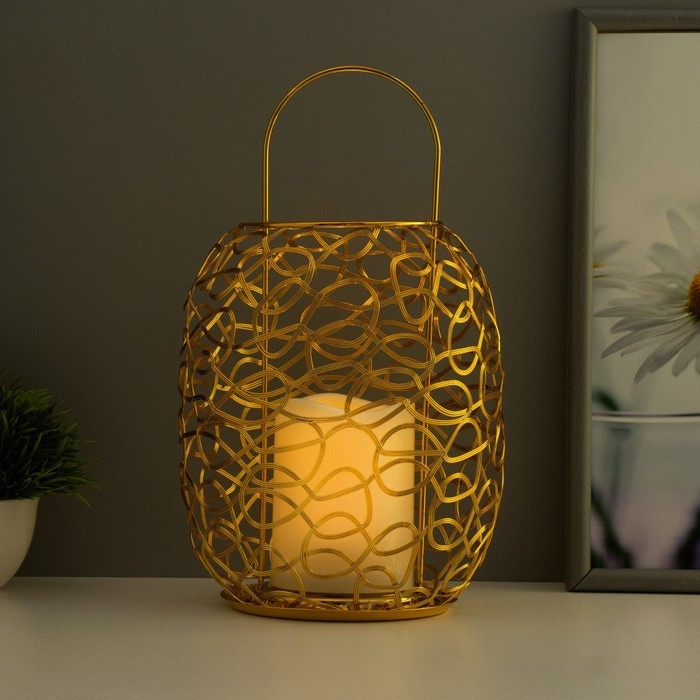 Ночник "Фонарь" LED от батареек 2хААА золото 16х16х20 см RISALUX