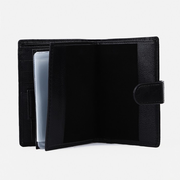 Портмоне мужское на кнопке, 3 в 1, для автодокументов, паспорта, карт, купюр, цвет чёрный