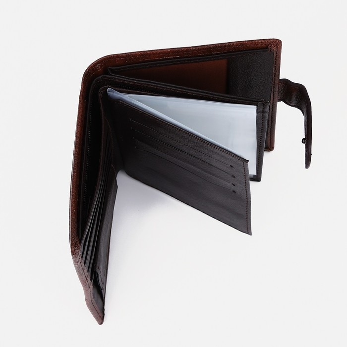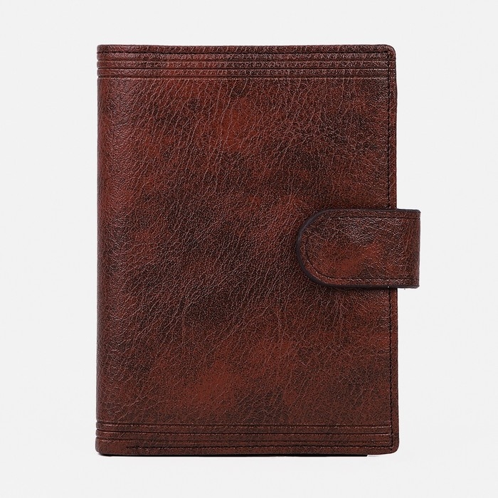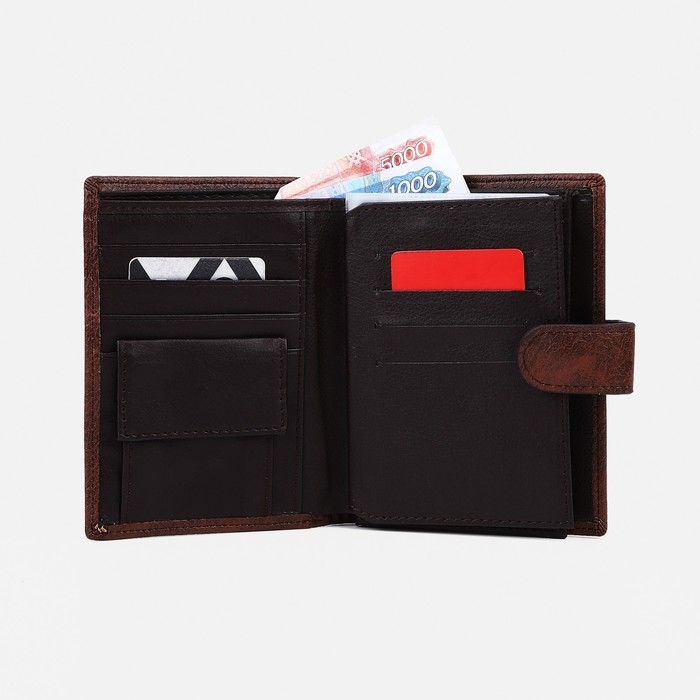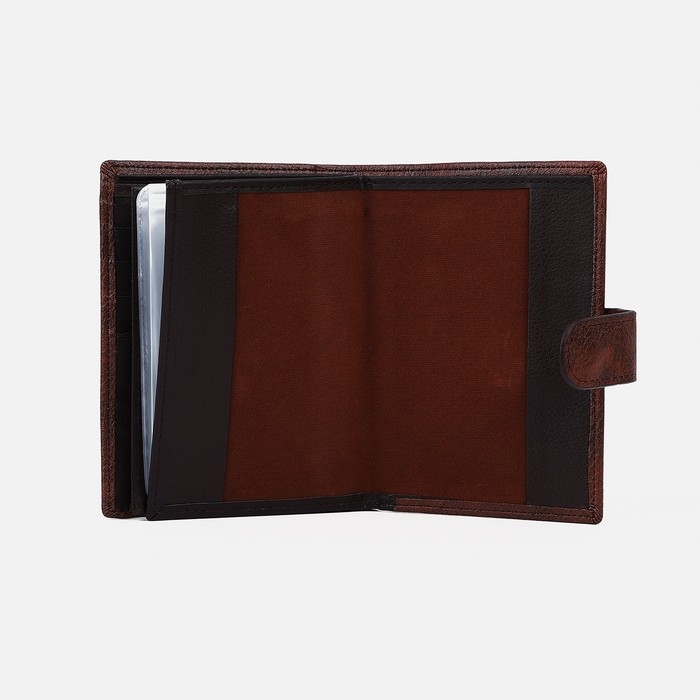 Портмоне мужское на кнопке, 3 в 1, для автодокументов, паспорта, карт, купюр, цвет коричневый