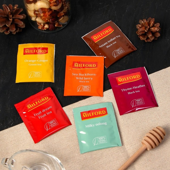 - Чай черный байховый с ароматов облепихи и лесных ягод;