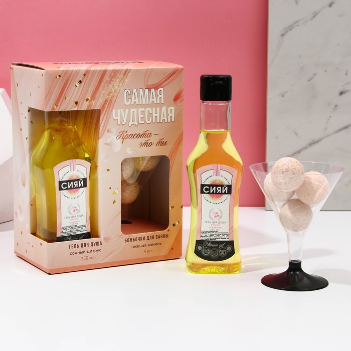 Новогодний подарочный набор косметики «Самая чудесная», гель для душа во флаконе мартини 250 мл и бомбочки для ванны 4 х 20 г, Новый Год