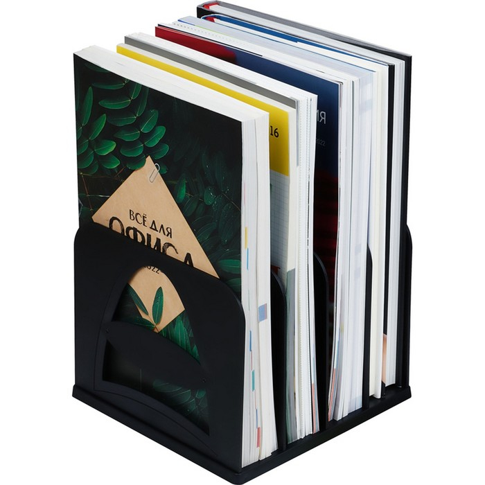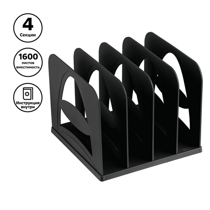 Подставка для журналов и бумаг (сортер) Стамм, сборная, 4 отделения, черная