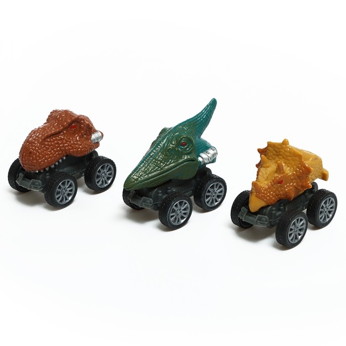 - Размер дино-машинок: 7 × 3,6 × 6 см, 5,5 × 3,6 × 5 см.
