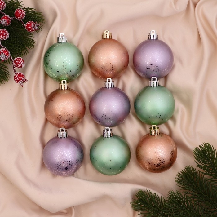 Набор шаров пластик d-6 см, 9 шт "Элит" треск, микс