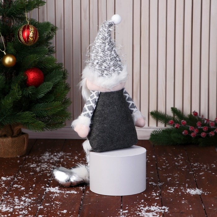 Мягкая игрушка "Дед Мороз в костюме с ремешком, ножки-бусинки" 15х39 см, серый