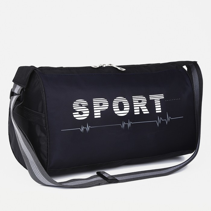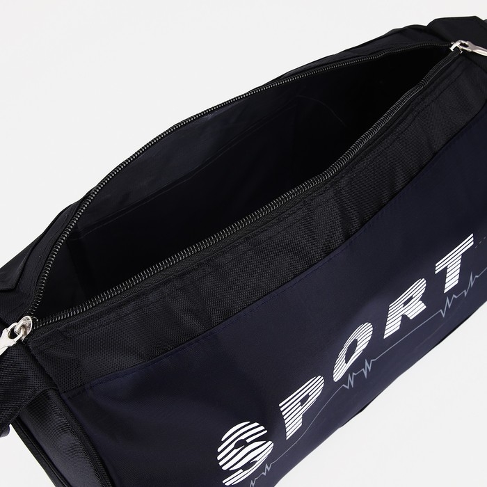 Сумка спортивная на молнии, боковой карман/сетка, регулируемый ремень, маленький размер, цвет чёрный/синий