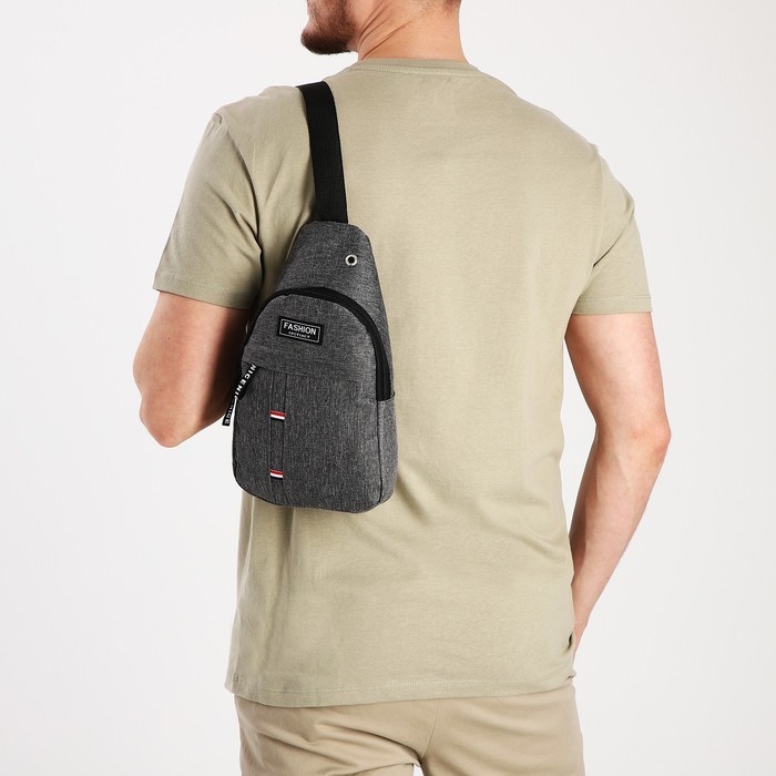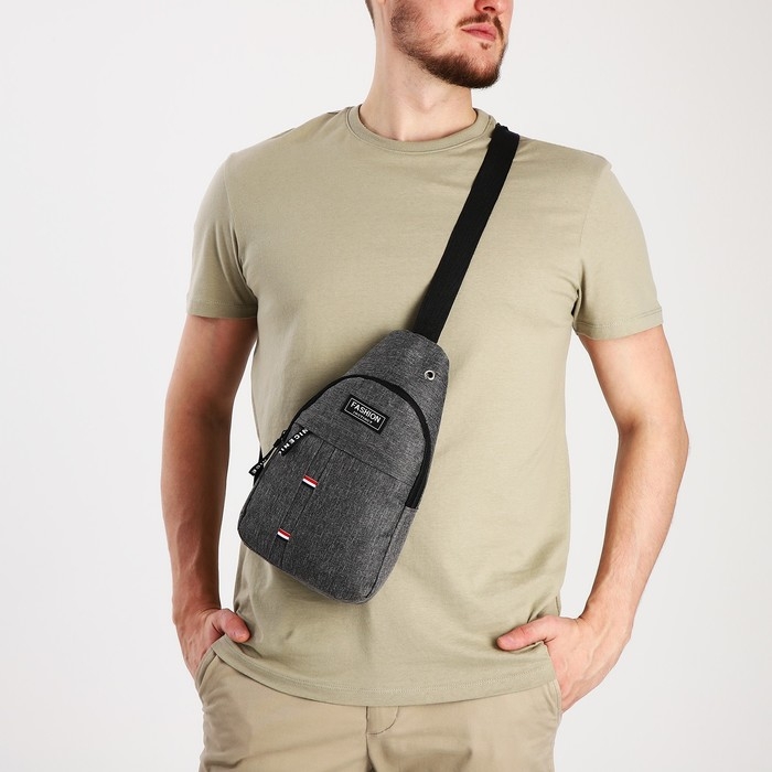 Сумка-слинг мужская из текстиля, отверстие для наушников, цвет серый