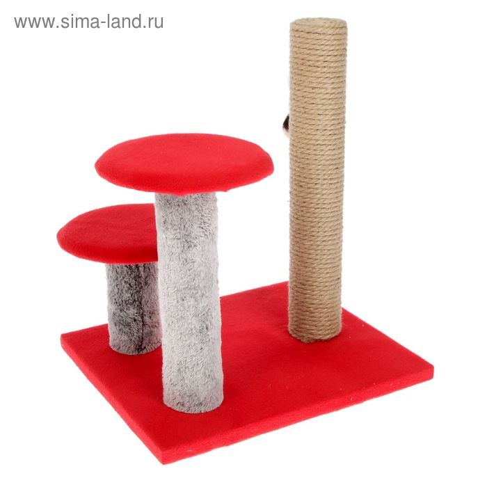 Когтеточка "Столбик" с двумя грибами, джут 43 х 36 х 31 см, МИКС ЦВЕТОВ