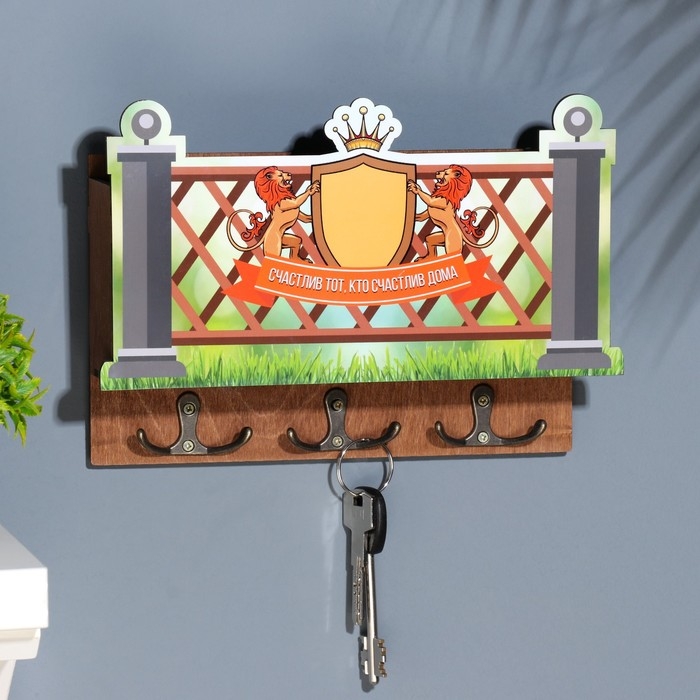 Ключница "Счастлив тот .." 3 отделения, 24х19х6 см