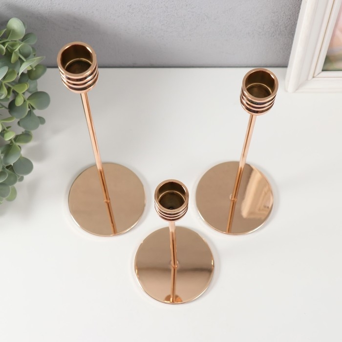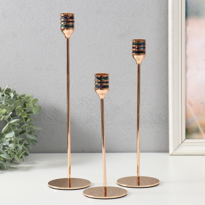 Подсвечник металл "Перелив. Полосы" d=2,5 см набор 3 шт золото 21,5 см, 27 см, 32 см