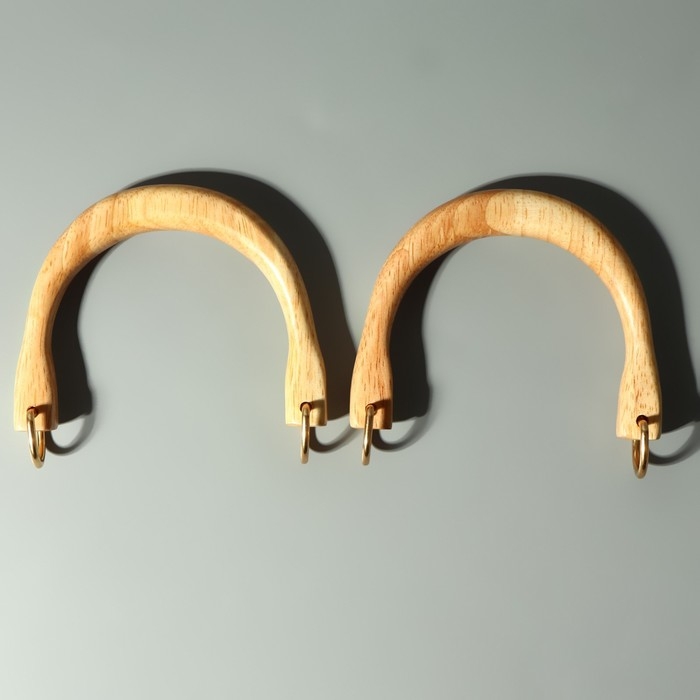 Ручки для сумки деревянные, с полукольцами, 10,3 × 8 см, 2 шт, цвет бежевый/золотой