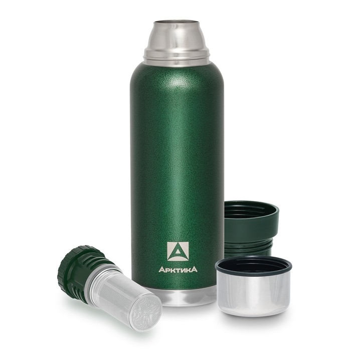 Термос "Арктика", 1.2 л, с ситечком, сохраняет тепло 32 ч, зеленый