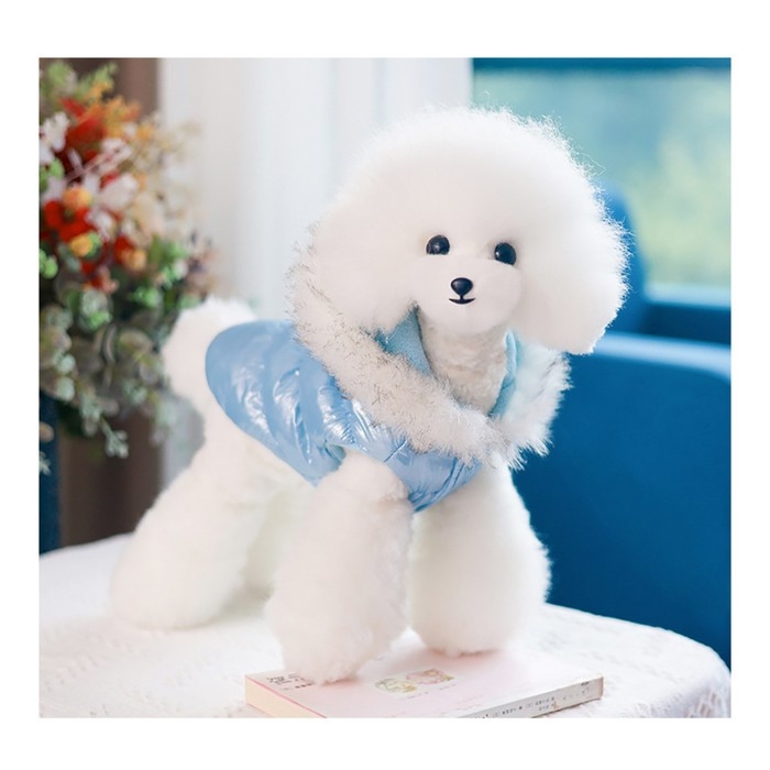 Позвольте вашей собаке чувствовать себя великолепно и стильно в этой куртке с меховым капюшоном.