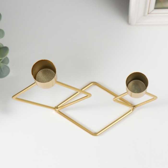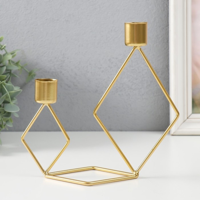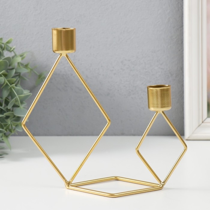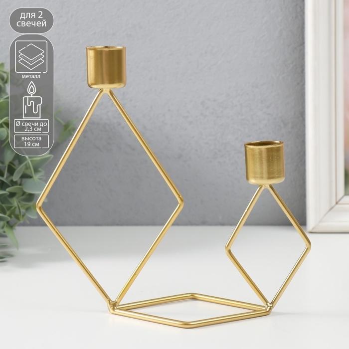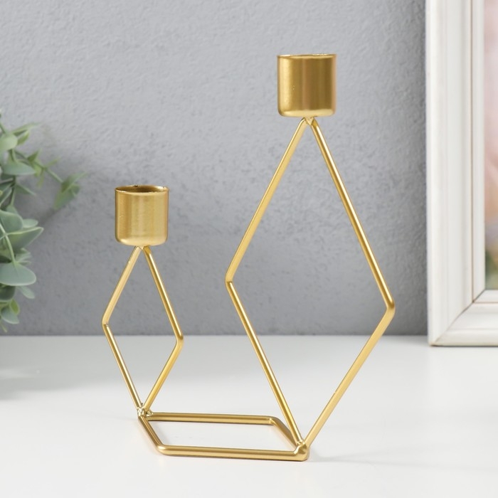 Подсвечник металл на 2 свечи "Геометрия. Ромбы" золото d=2,3 см 7,8х18х19 см