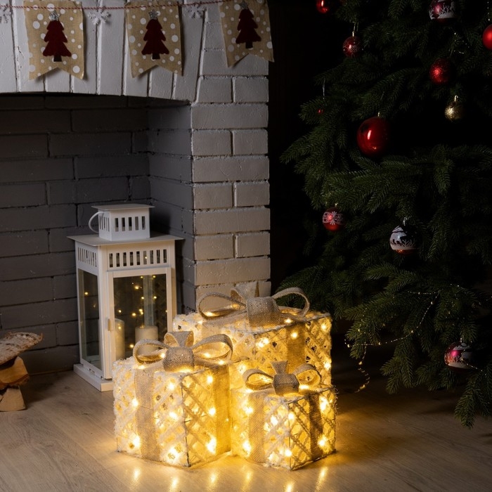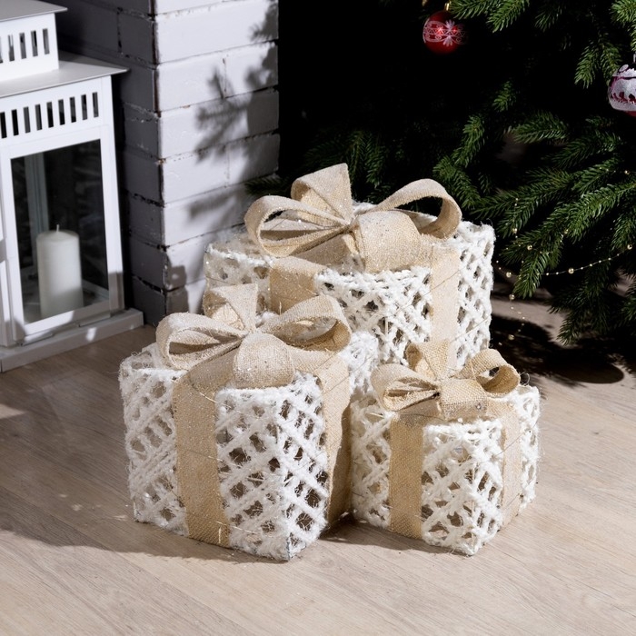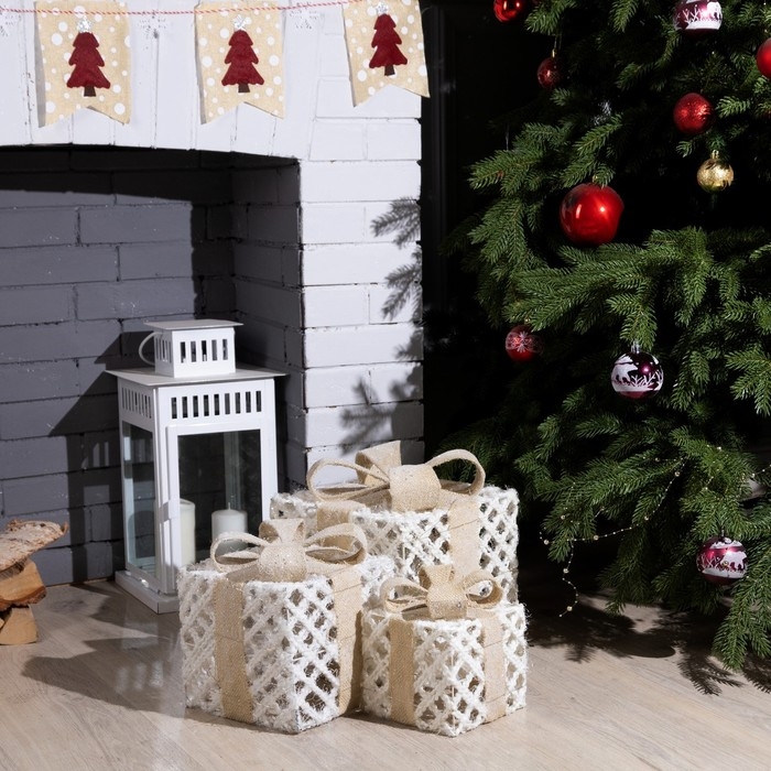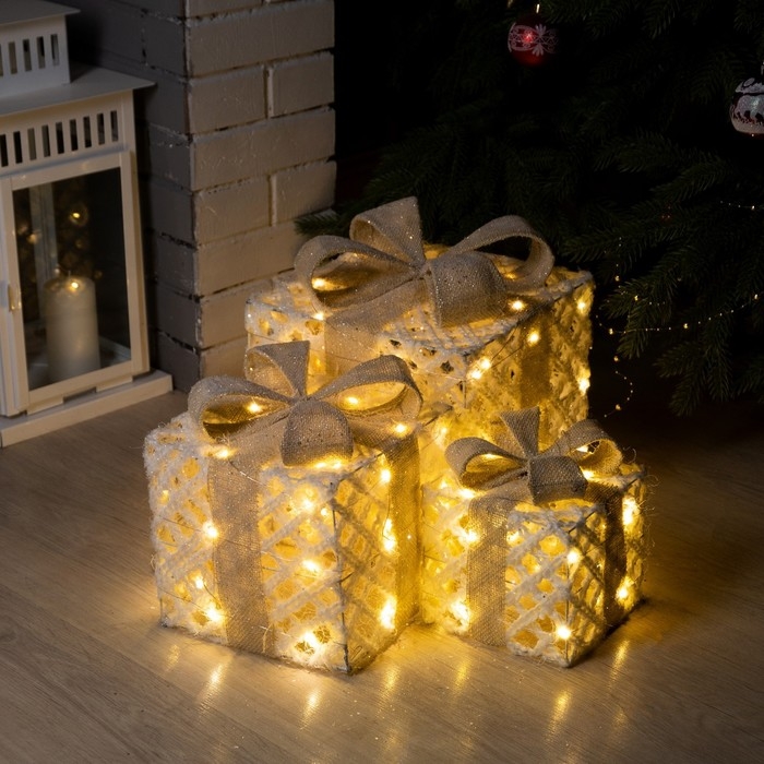Светодиодная фигура «Ажурные подарки» 15, 20, 25 см, текстиль, металл, батарейки ААх2 (не в комплекте), свечение тёплое белое