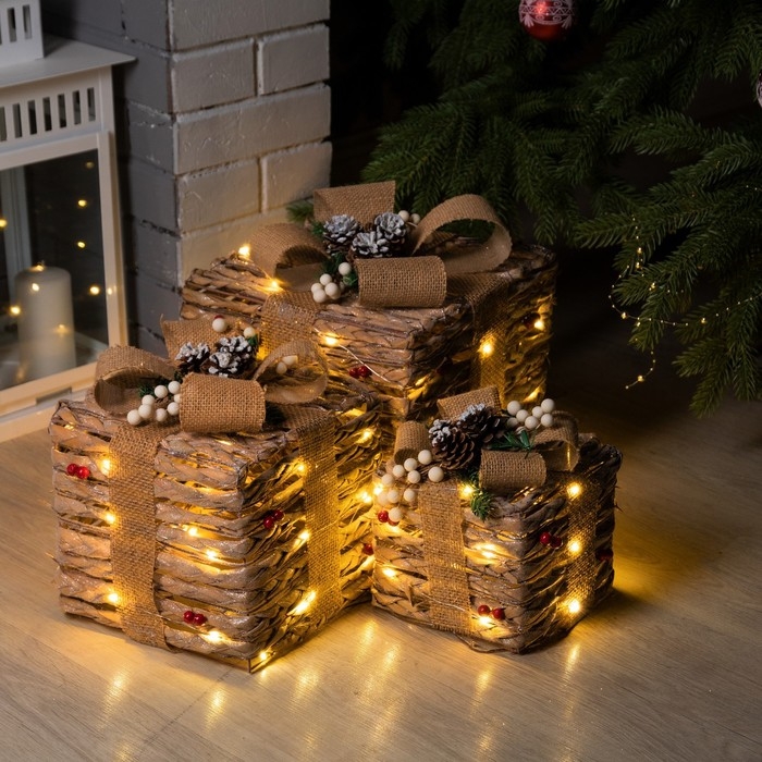 Светодиодная фигура «Эко-подарки» 15, 20, 25 см, текстиль, металл, батарейки ААх2 (не в комплекте), свечение тёплое белое