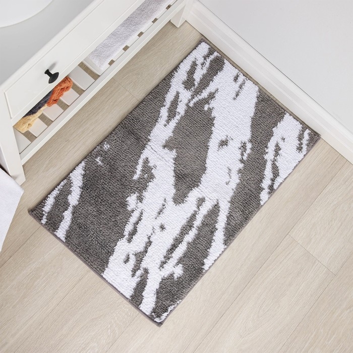Коврики для ванной и туалета Доляна «Мрамор», 2 шт: 79×50 см, 50×39 см, цвет серый