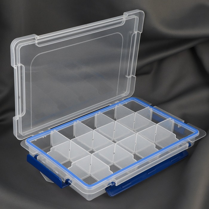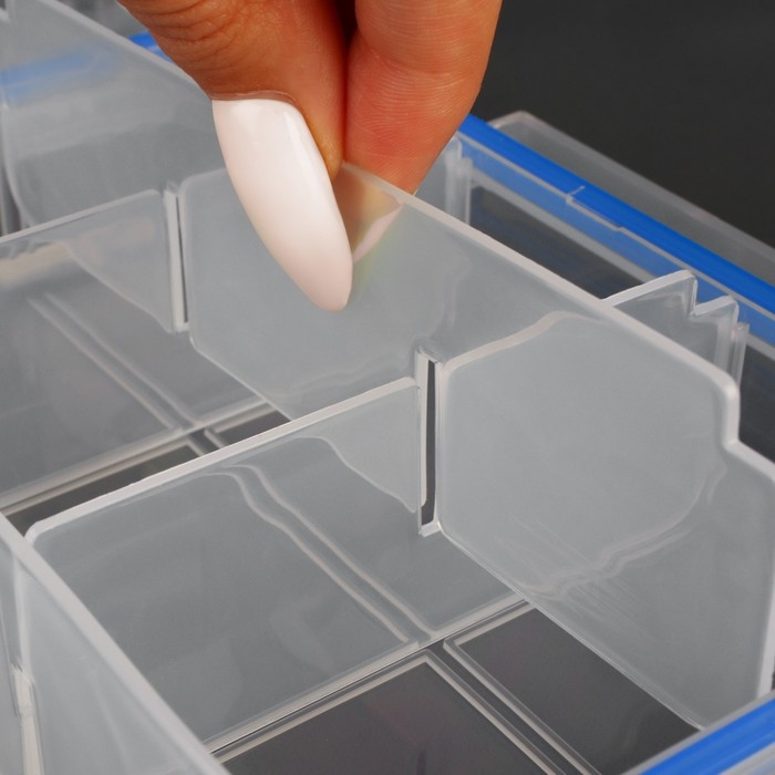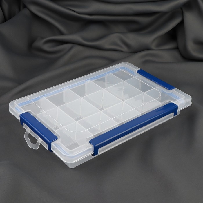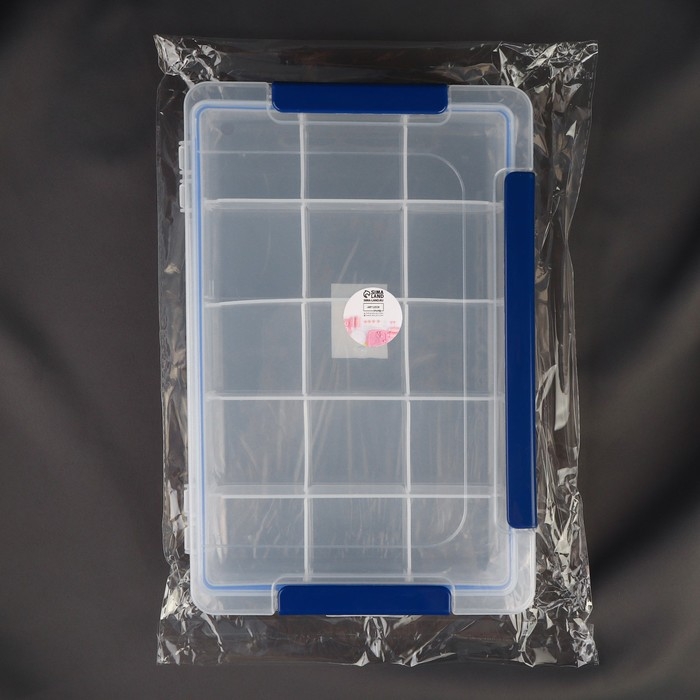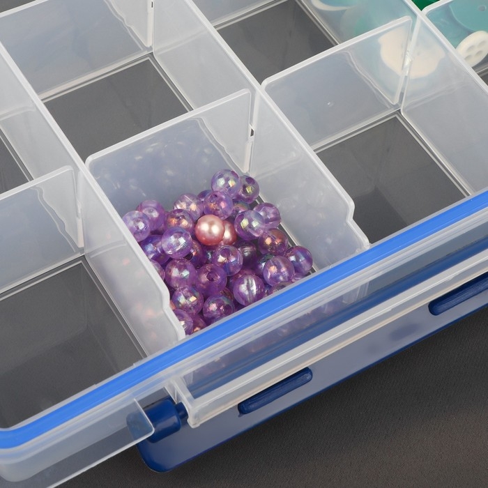 Органайзер для рукоделия, со съёмными ячейками, с подвесом, 15 отделений, 27 × 17 × 4,3 см, цвет прозрачный/синий