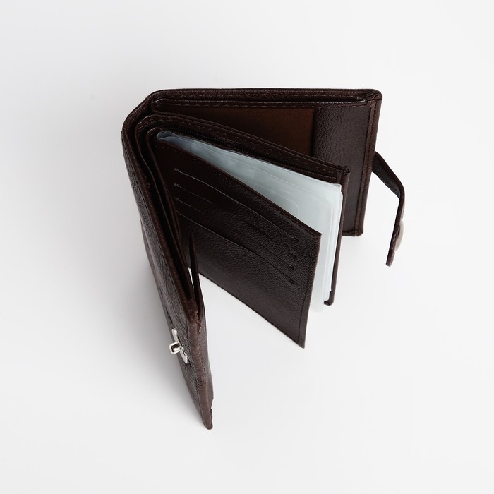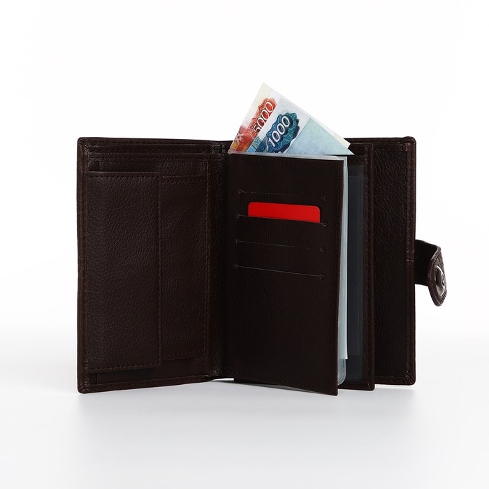 Портмоне мужское на магните, 3 в 1, для купюр, автодокументов и паспорта, цвет коричневый