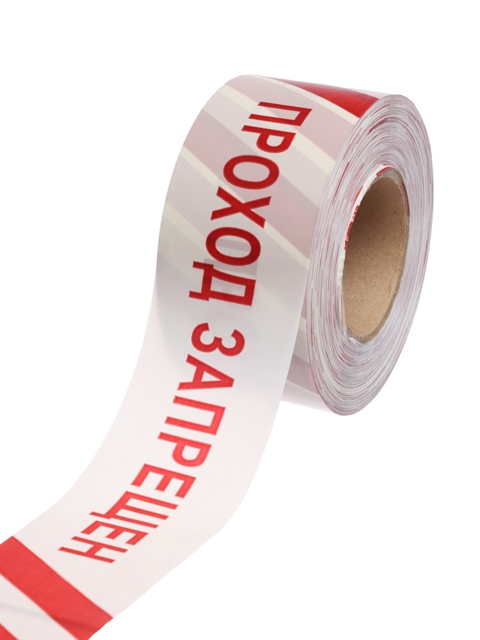 Лента оградительная "Проход Запрещен" 250 м, красно-белая, ширина 7,5 см, толщина 50 мкм