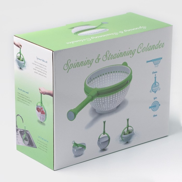 Сочетание яркого зеленого и белого цветов даже в самый холодный день напомнит о теплом лете и свежести зелени. Удобный дуршлаг с ручкой подходит не только для сушки свежих продуктов с грядки, но и для слива воды из кастрюли с макаронами, например.