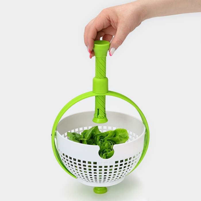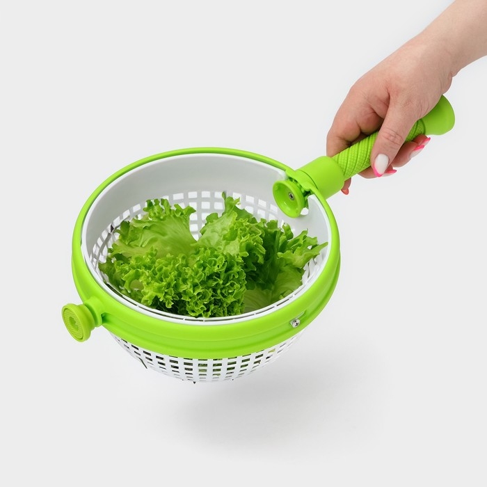 Центрифуга для сушки зелени Доляна Fresh cook, 2 л, пластик, цвет белый/зелёный