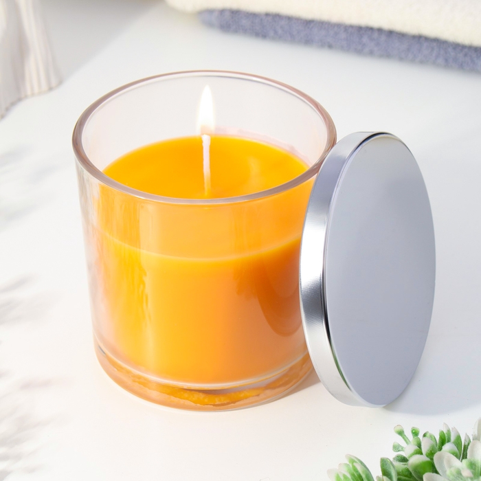 Свеча ГИГАНТ ароматическая в стакане "Сочный апельсин", соевый воск, 10х10 см