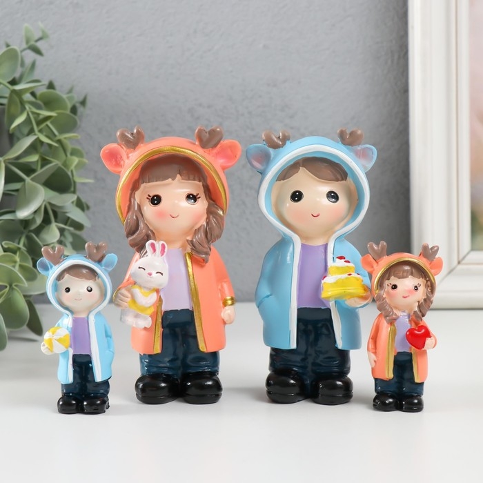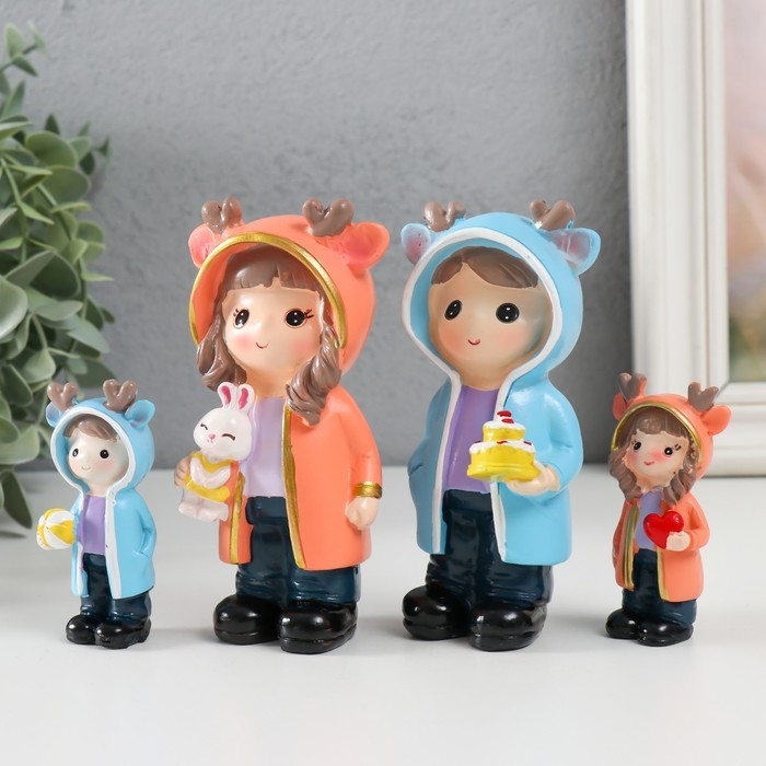 Сувенир полистоун "Малыши в дождевиках с рожками" набор 4 шт 2х2х7 4х3,5х11,5 см