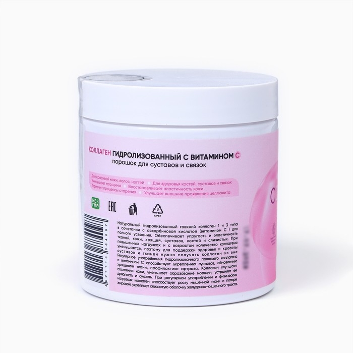Этот продукт не имеет конкретного вкуса или аромата, что делает его удобным для комбинирования с вашими любимыми напитками или блюдами. Воспользуйтесь этим универсальным решением для поддержания своего здоровья и красоты. Коллаген говяжий гидролизованный с витамином C - ваш надежный партнер в пути к лучшему самочувствию. Попробуйте его уже сегодня и наслаждайтесь результатами!