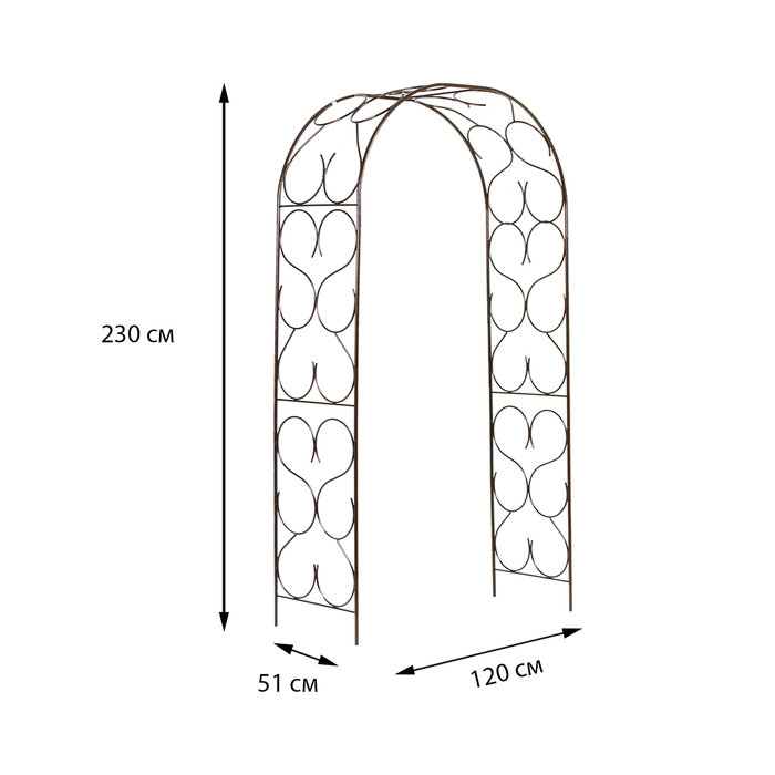 Арка садовая, разборная, 230 × 120 × 51 см, металл, бронзовая