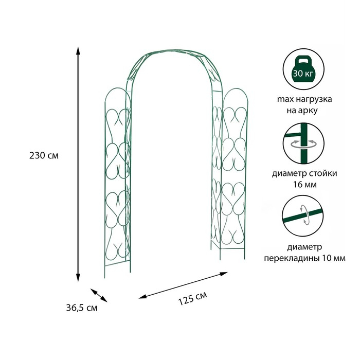 Арка садовая, разборная, 230 × 125 × 36,5 см, металл, зелёная
