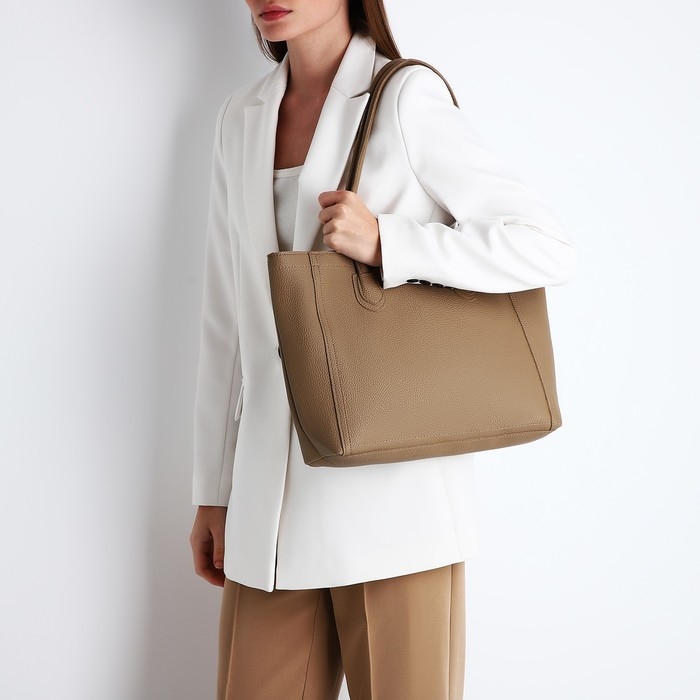 Сумка-шопер женская на молнии, цвет бежевый