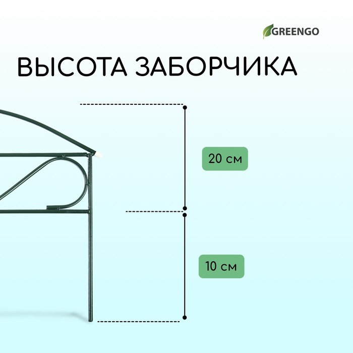 Ограждение декоративное, 37 × 325 см, 5 секций, металл, зелёное, «Узкий мини», Greengo