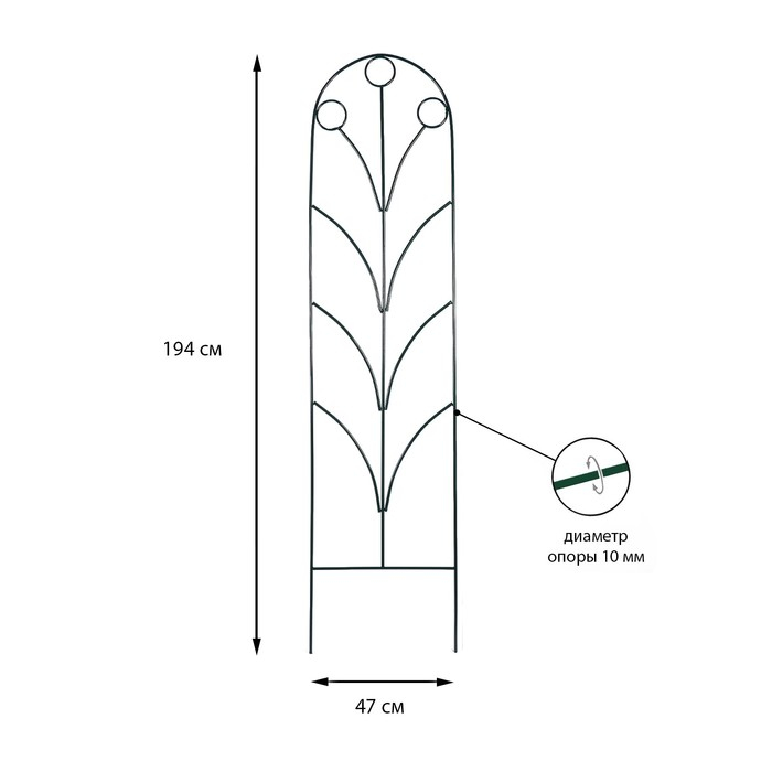 Шпалера, 194 × 47 × 1 см, металл, зелёная, «Калинка»