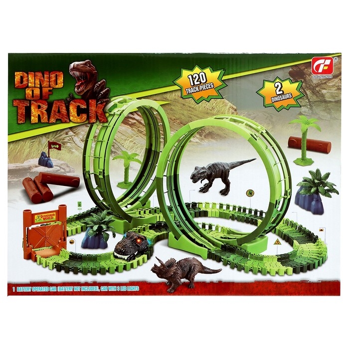 Гибкий автотрек «Дино», мёртвая петля, световые эффекты, работает от батареек