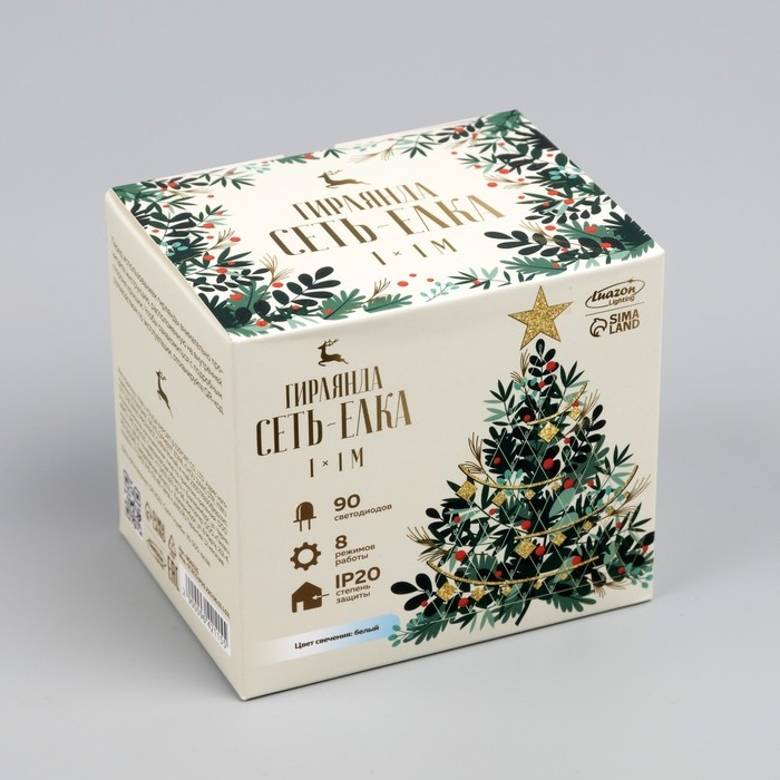 Гирлянда «Сеть-ёлка» 1 × 1 м, IP20, тёмная нить, 90 LED, свечение белое, 8 режимов, 220 В