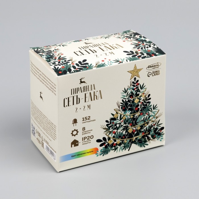Гирлянда «Сеть-ёлка» 2 × 2 м, IP20, тёмная нить, 152 LED, свечение мульти, 8 режимов, 220 В