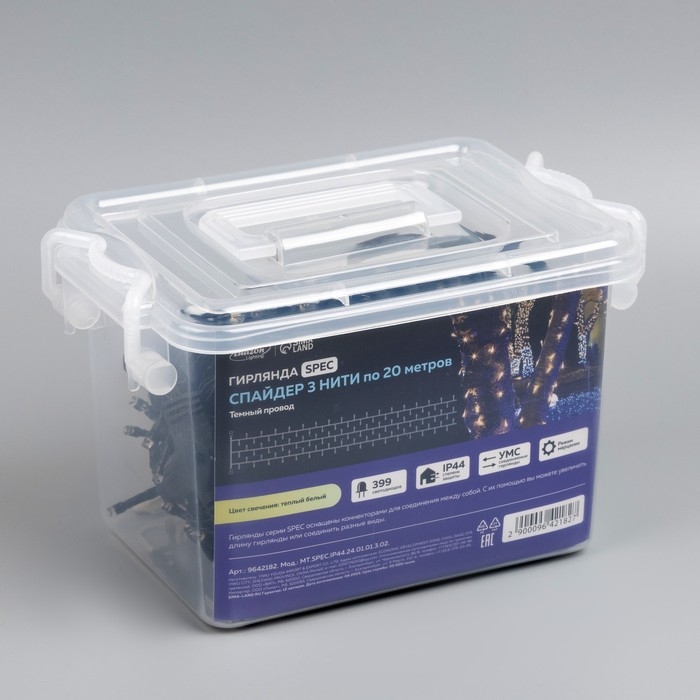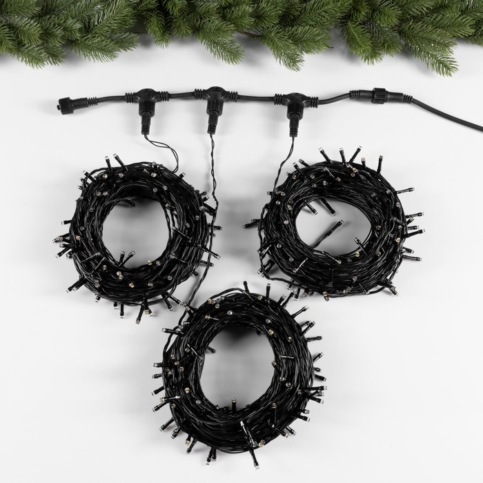 Гирлянда «Клип-лайт» 3 нити по 20 м, IP44, УМС, тёмная нить, 399 LED, свечение тёплое белое, мерцание, 24 В