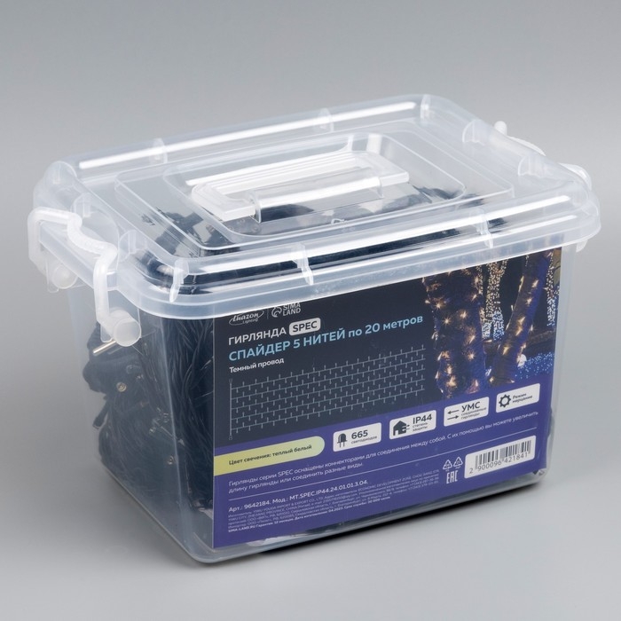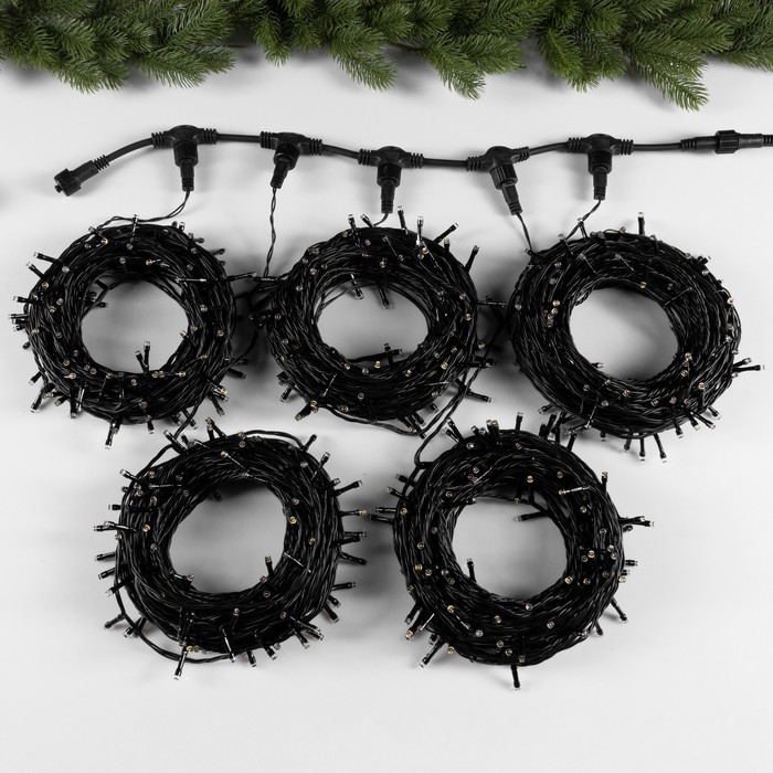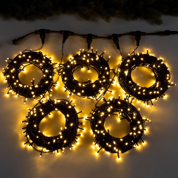 Гирлянда «Клип-лайт» 5 нитей по 20 м, IP44, УМС, тёмная нить, 665 LED, свечение тёплое белое, мерцание, 24 В