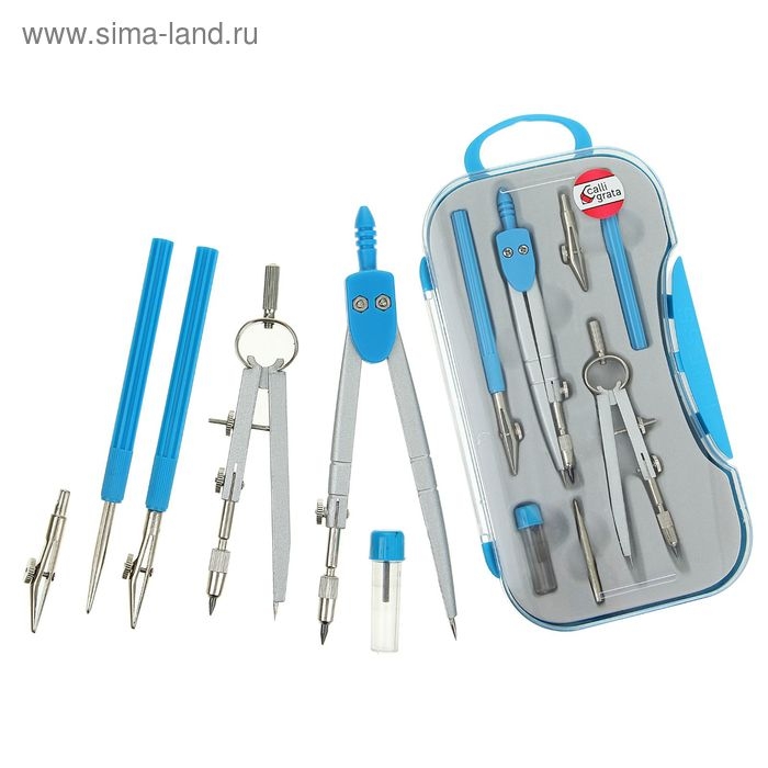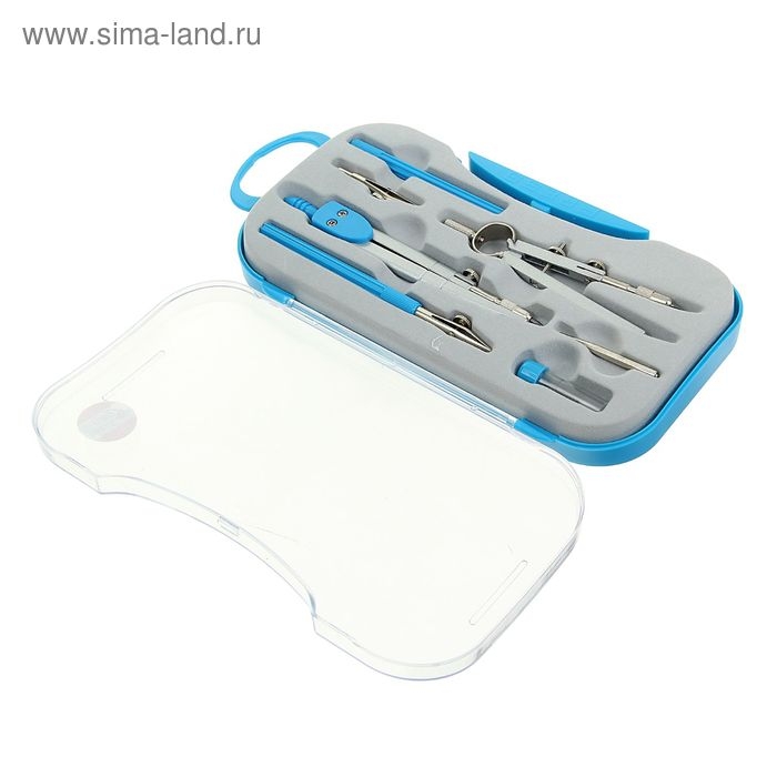 Готовальня 7 предметов (2 циркуля, 2 рейсфедера, 2 удлинителя, грифель, центрик), в пластиковом пенале