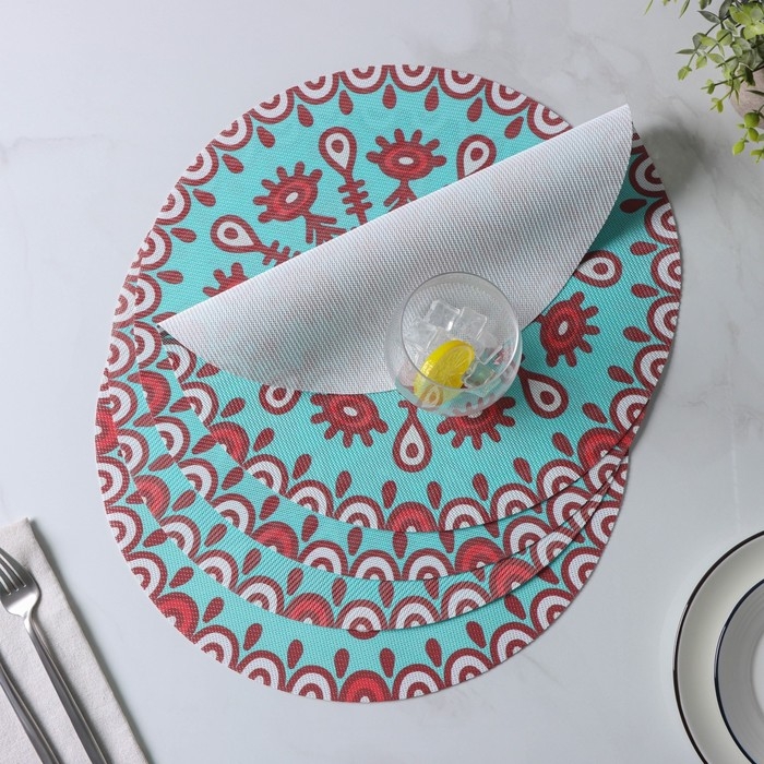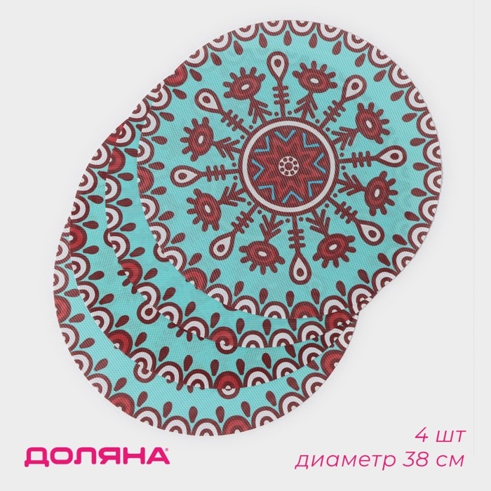 Салфетки сервировочные на стол Доляна «Колли», 4 шт, d=38 см, цвет бирюзовый