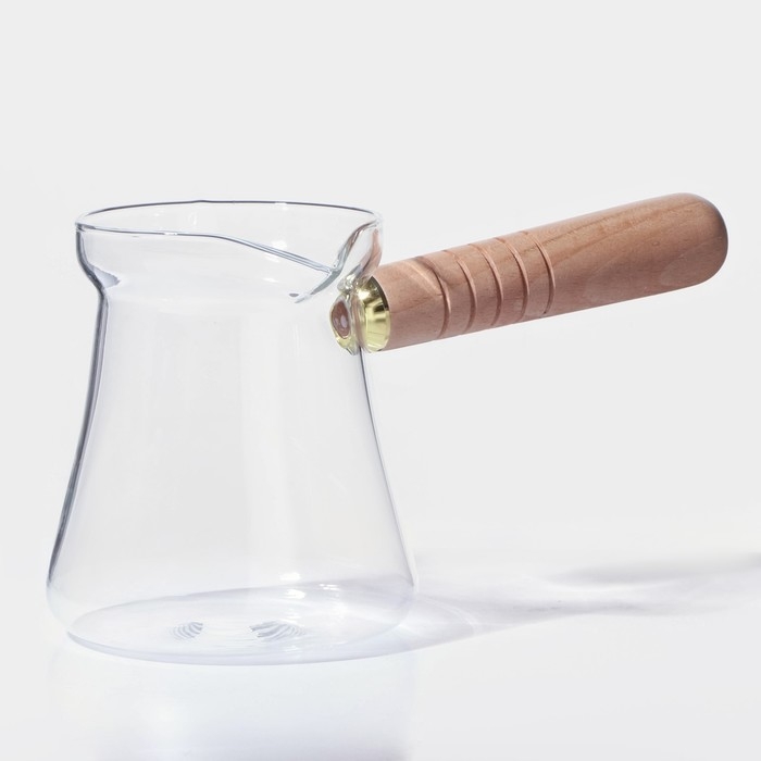 Турка стеклянная «Арабика», 300 мл, 18,5×9×10 см, деревянная ручка