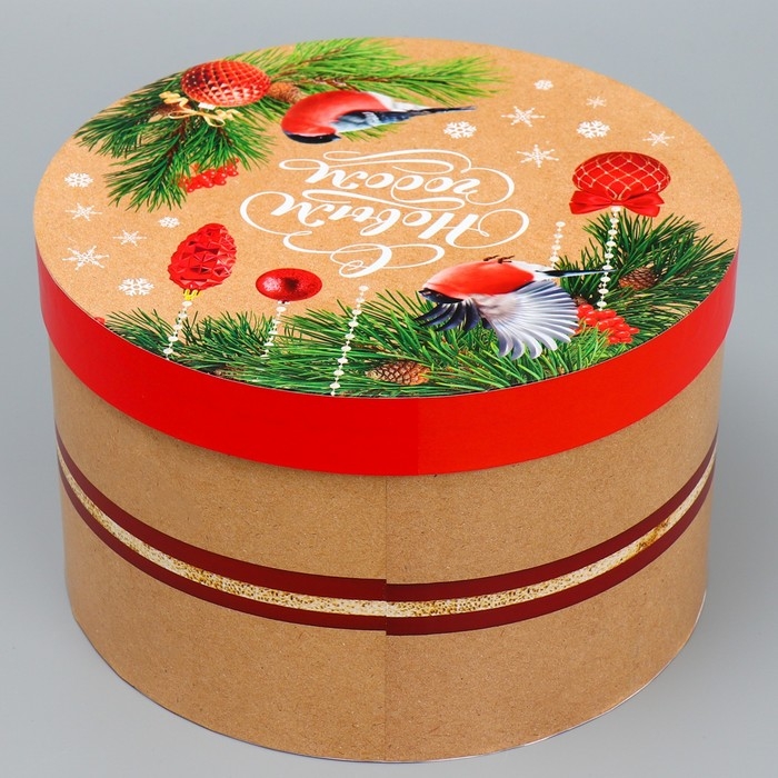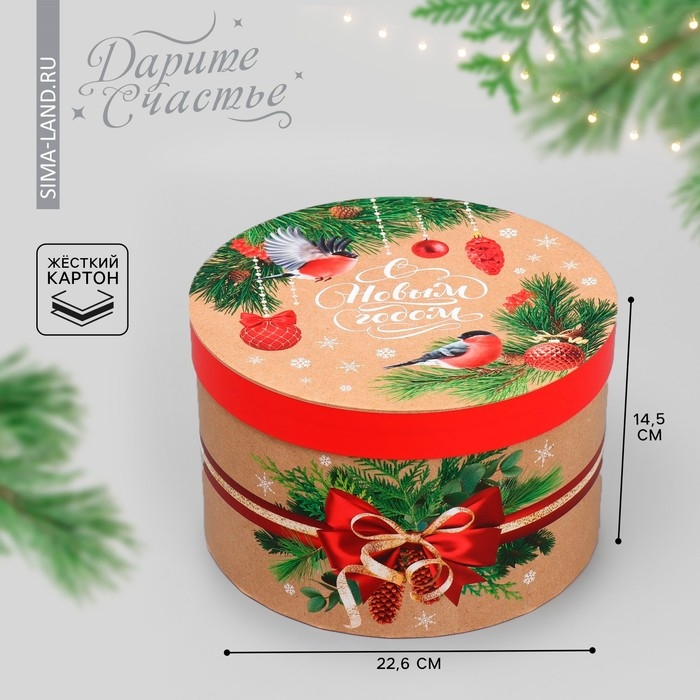 Коробка подарочная круглая «Новогодняя ботаника», 14.5 х 22.6 см, Новый год